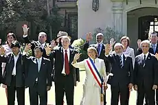 His administration was characterized by macroeconomic boom, promoting foreign investment, the signing of free trade agreements, and the implementation of various investment projects in infrastructure and human development.[5] At the same time, Toledo suffered a governance crisis, scandals in his personal life, and allegations of corruption against his inner circle, signs that hit his popularity until he fell to 8% of popular approval.[6][7] Subsequently, he would try to regain the presidency in the 2011 Peruvian general election,[8][9][10][11] placing fourth.[12] He ultimately placed eighth in the 2016 Peruvian general election.[13]
