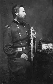 Chambers was born in Cattaraugus, New York. He graduated from West Point with the class of 1853 (which also included John Schofield and Philip Sheridan), and was commissioned a second lieutenant.[1] He fought in the Third Seminole War from 1855, and was promoted to first lieutenant in 1859. In May 1861, shortly after the war started, he was promoted to captain, and performed recruiting duty in Iowa. Promoted to colonel in March 1862, he took command of the 16th Iowa Volunteer Infantry Regiment, leading it at the Battle of Shiloh and the Battle of Iuka, being wounded on both occasions.[2] Returning to duty, he led a brigade in the Vicksburg Campaign. In August 1863, he was appointed brigadier general of volunteers and led a division in the XVII Corps, but his appointment was revoked by the U.S. Senate in April 1864.[3] On December 8, 1868, President Andrew Johnson nominated Chambers for appointment to the brevet grade of brigadier general of volunteers, to rank from March 13, 1865, for the Battle of Champion's Hill, and the U.S. Senate confirmed the appointment on February 16, 1869.[4]