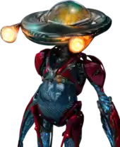 The film's iteration of Alpha 5 has a bio-mechanical look that uses darker hues of the original design's red and blue colors, with a pair of eye stalks dangling from the saucer-shaped head as opposed to a visor.[15] Like his original TV series iteration, Alpha 5 is an android aide of Zordon; however, he has a less convivial relationship with the teenagers and is skeptical of their competence as the new Power Rangers.[16][6]