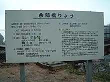 This bridge was the San'in Main Line's most difficult project after the Tokan Tunnel, one end of which begins at the bridge's east end. Following the structure's completion, it completed the rail link from Kyōto to Izumo. Over 90 years after its completion, it remained Japan's largest railway trestle and had great historical value as an early railway structure.