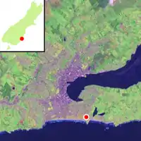 Andersons Bay Cemetery is a major cemetery in the New Zealand city of Dunedin. It is located 4 kilometres (2.5 mi) to the southeast of the city centre, on a rocky outcrop which forms the inland part of Lawyers Head, a promontory which juts into the Pacific Ocean. The cemetery is bounded on the western and southern sides by Chisholm Park Golf Links, and to the east by steep slopes which descend to the Tomahawk Lagoon. Despite its name, the cemetery is located in the suburb of Tahuna, which lies immediately to the south of the suburb of Andersons Bay, and almost 1 kilometre (0.62 mi) from the former (now largely reclaimed) bay itself, at the head of the Otago Harbour.