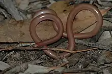 The prong-snouted blind snake (Anilios bituberculatus) is a species of non-venomous worm-like burrowing snakes belonging to the Typhlopidae family.[2][3][4] It is endemic to central southern, continental Australia.[5]