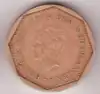 The 50-cent coin is diamond-shaped. It is the only modern Antillean coin in this form, but an earlier version of the five-cent piece was also in this shape.
