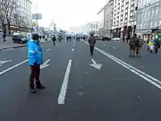 The 'corridor' on Khreshchatyk between the Euromaidan and 'Anti-Maidan' demonstrations, looking towards Maidan Nezalezhnosti, 8:00 am, 14 December.