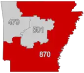 34°12′N 92°00′W / 34.2°N 92.0°W / 34.2; -92.0 (Area code 870)