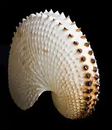 | Eggcase of Argonauta nodosa, showing the derived double keel of the genus | |