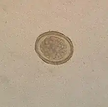 The eggs have a lipid layer which makes them resistant to the effects of acids and alkalis, as well as other chemicals. This resilience helps to explain why this nematode is such a ubiquitous parasite.[8]