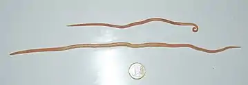 Ascaris suum, also known as the large roundworm of pig, is a parasitic nematode that causes ascariasis in pigs. While roundworms in pigs and humans are today considered as two species (A. suum and A. lumbricoides) with different hosts, cross-infection between humans and pigs is possible; some researchers have thus argued they are the same species.[1] Ascariasis is associated with contact to pigs and pig manure in Denmark.[2]
