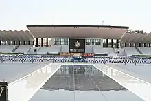 Sadat was buried in the Unknown Soldier Memorial, located in the Nasr City district of Cairo. The inscription on his grave reads: "The hero of war and peace".[14] The funeral was attended by three former Presidents of the United States—Richard Nixon, Gerald R. Ford, Jimmy Carter—as well as Israeli Prime Minister Menachem Begin, French President François Mitterrand, West German Chancellor Helmut Schmidt, Italian President Sandro Pertini, Irish President Patrick Hillery, Spanish Prime Minister Leopoldo Calvo-Sotelo, and King Baudouin of Belgium.[27] The sitting U.S. President Ronald Reagan, who had survived an assassination attempt of his own several months prior, opted not to attend because of the tense political situation, although his administration would be represented by Secretary of State Alexander Haig, Secretary of Defense Caspar Weinberger, and Ambassador to the United Nations Jeane Kirkpatrick. Stevie Wonder and Walter Cronkite also attended.[27][20]