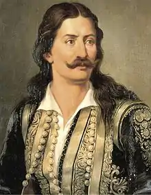 Diakos served under a number of local klepht leaders in the region of Roumeli, distinguishing himself in various encounters with the Ottomans. He also served for a time as a mercenary in the army of Ali Pasha of Ioannina in Epirus, where he befriended Odysseas Androutsos, another klepht. When Androutsos became the captain of a unit of armatoloi at Livadeia, Diakos served for a time as his protopallikaro (literally "first warrior", or lieutenant). In the years leading up to the Greek War of Independence, Diakos had formed his own band of klephtes and, like many other klepht and armatoloi captains, he had become a member of the Filiki Eteria.[3]