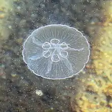 - ↑ Dawson, M. N. (2003). "Macro-morphological variation among cryptic species of the moon jellyfish, Aurelia (Cnidaria: Scyphozoa)". Marine Biology. 143 (2): 369–79. doi:10.1007/s00227-003-1070-3. S2CID 189820003.