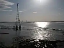 Eastern pylon at Aust, photographed from the Severn Bridge