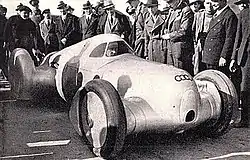 German racing driver Hans Stuck Sr. had met Hitler before he became Chancellor, and not being able to gain a seat at Mercedes, accepted the invitation of Rosenberger to join him, von Oertzen, and Porsche in approaching the Chancellor. In a meeting in the Reich Chancellory, Hitler agreed with Porsche that for the glory of Germany, it would be better for two companies to develop the project, resulting in Hitler agreeing to pay £40,000 for the country's best racing car of 1934, as well as an annual stipend of 250,000 [7] (£20,000)[8] each for Mercedes and Auto Union. (In time, this would climb to £250,000.)[9] This highly annoyed Mercedes, who had already developed their Mercedes-Benz W25; nevertheless, Mercedes was gratified, its racing program having financial difficulties since 1931.[9] It resulted in a heated exchange both on and off the racing track between the two companies until World War II.