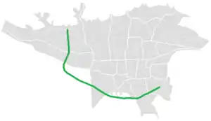 Azadegan Expressway or Tehran Ringway is an expressway in southern Tehran. It connects Tehran-Mashhad Highway to Tehran-Karaj-Tabriz Freeway and Tehran-Shomal Freeway.