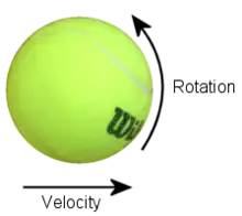In sports, backspin or underspin refers to the reverse rotation of a ball, in relation to the ball's trajectory, that is imparted on the ball by a slice or chop shot. Backspin generates an upward force that lifts the ball (see Magnus effect).[1] While a normal hit bounces well forward as well as up, backspin shots bounce higher and less forward. Backspin is the opposite of topspin.