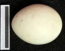 In Sonora, Mexico, eagles have been observed nesting on top of hecho catcuses (Pachycereus pectin-aboriginum).[161] Nests located on cliffs and rock pinnacles have been reported historically in California, Kansas, Nevada, New Mexico and Utah, but currently are only verified to occur only in Alaska and Arizona.[18] The eggs average about 73 mm (2.9 in) long, ranging from 58 to 85 mm (2.3 to 3.3 in), and have a breadth of 54 mm (2.1 in), ranging from 47 to 63 mm (1.9 to 2.5 in).[53][57] Eggs in Alaska averaged 130 g (4.6 oz) in mass, while in Saskatchewan they averaged 114.4 g (4.04 oz).[162][163] As with their ultimate body size, egg size tends to increase with distance from the equator.[57] Eagles produce between one and three eggs per year, two being typical. Rarely, four eggs have been found in nests, but these may be exceptional cases of polygyny.[135] Eagles in captivity have been capable of producing up to seven eggs.[164] It is rare for all three chicks to successfully reach the fledgling stage. The oldest chick often bears the advantage of larger size and louder voice, which tends to draw the parents' attention towards it.[18] Occasionally, as is recorded in many large raptorial birds, the oldest sibling sometimes attacks and kills its younger sibling(s), especially early in the nesting period when their sizes are most different.[18] However, nearly half of known bald eagles produce two fledglings (more rarely three), unlike in some other "eagle" species such as some in the genus Aquila, in which a second fledgling is typically observed in less than 20% of nests, despite two eggs typically being laid.[28] Both the male and female take turns incubating the eggs, but the female does most of the sitting. The parent not incubating will hunt for food or look for nesting material during this stage. For the first two to three weeks of the nestling period, at least one adult is at the nest almost 100% of the time. After five to six weeks, the attendance of parents usually drops off considerably (with the parents often perching in trees nearby).[18]