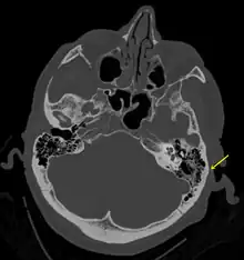 - 1 2 3 4 5 6 7 8 9 10 11 12 13 14 15 16 17 18 19 20 Baugnon, KL; Hudgins, PA (August 2014). "Skull base fractures and their complications". Neuroimaging Clinics of North America. 24 (3): 439–65, vii–viii. doi:10.1016/j.nic.2014.03.001. PMID 25086806.