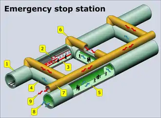 [image shows an evacuation station of the base tunnel Gotthard, the longest railway tunnel in the world 57 km (35 mi)]