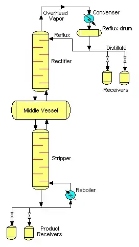 A third feasible batch column configuration is the middle vessel column. The middle vessel column consists of both a rectifying and a stripping section and the charge pot is located at the middle of the column.