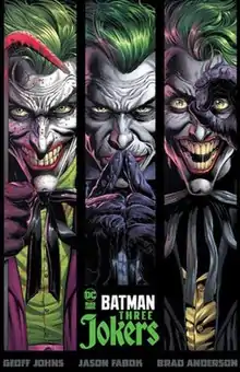 ![]() Cover art of Batman: Three Jokers (September 2020) featuring The Clown Joker (left), The Criminal Joker (center), and The Comedian Joker (right); art by Jason Fabok and Brad Anderson. | |
