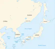 The Russians had three possible routes to enter the Sea of Japan and reach Vladivostok: the longer were the La Pérouse Strait and Tsugaru Strait, on either side of Hokkaido. Admiral Rozhestvensky did not reveal his choice even to his subordinates until 25 May, when it became apparent he chose Tsushima by ordering the fleet to head North East after detaching transports Yaroslavl, Vladimir, Kuronia, Voronezh, Livonia and Meteor as well as auxiliary cruisers Rion and Dniepr with the instruction to go to the near-by neutral port of Shanghai.[19]:Book 1,Part 4 The Tsushima Strait is the body of water eastward of the Tsushima Island group, located midway between the Japanese island of Kyushu and the Korean Peninsula, the shortest and most direct route from Indochina. The other routes would have required the fleet to sail east around Japan.[lower-alpha 10] The Japanese Combined Fleet and the Russian Second and Third Pacific Squadrons, sent from the Baltic Sea now numbering 38, would fight in the straits between Korea and Japan near the Tsushima Islands.[26]