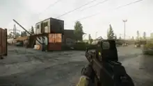 The developers of Escape from Tarkov refer to the game as a realistic and hardcore first-person shooter, survival video game that borrows elements from massively multiplayer online games.[2][3] In its current state, Escape from Tarkov incorporates three different modes for the players to play: online PMC raids, Scav (short for "scavenger") raids,[4][3][5] and a temporary offline mode.[2] In these raids, players can choose to play solo or in groups and spawn on one side of a variety of maps to choose from in the game.[6] Once in-game, the players are given an extraction point on the other side of the map, and must fight against other players and non-player characters to reach that point in order to escape. In addition to these standard extractions, players are also given the opportunity to use other extraction points near the middle of the map, but must meet various requirements depending on the specific extract.[7] In addition to combat, players can also find loot such as firearms, equipment, and armor. Once extracted, can store their loot in a stash to use in future raids or sell it to other players in a virtual flea market.[7][8]