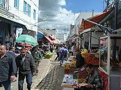 Béja (Arabic: باجة ⓘ) is a city in Tunisia. It is the capital of the Béja Governorate. It is located 105 kilometers (65 mi) from Tunis, between the Medjerdah River and the Mediterranean, against the foothills of the Khroumire, the town of Béja is situated on the sides of Djebel Acheb, facing the greening meadows, its white terraces and red roofs dominated by the imposing ruins of the old Roman fortress.