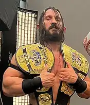 From 2012 to 2015, Satterley wrestled under the name Adrian Neville in NXT, the developmental territory of WWE. He won the NXT Tag Team Championship twice, with his first reign coming as one half of the inaugural champions with Oliver Grey and his second reign being with Corey Graves. He is also a one-time NXT Champion, making him the first man to have held both the NXT Championship and the NXT Tag Team Championship.[8] He was promoted to the main roster under the shortened ring name Neville in 2015 and began competing in the cruiserweight division in 2016, becoming a record two-time (and longest-reigning) WWE Cruiserweight Champion.[9][10]