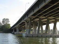 The Benjamin Sheares Bridge (Chinese: 薛尔思桥; pinyin: Xūeěrsī Qíao; Malay: Jambatan Benjamin Sheares; Tamil: பென்ஜமின் ஷியர்ஸ் பாலம்) is the longest bridge in Singapore, spanning 1.8 km, and the tallest, at 29 metres (95 ft). It is named after Benjamin Sheares, the second President of Singapore, who died four months before the bridge was opened to the public on 26 September 1981.[2] The bridge is part of the East Coast Parkway (ECP), at the western end of the expressway. The cost of construction was S$110 million.[3]
