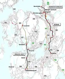 1. 1 2 "Bergensprogrammet: God og miljøvennlig transport med bybane" (in Norwegian). Norwegian Ministry of Transport and Communications. 19 August 2005. Retrieved 8 November 2009.