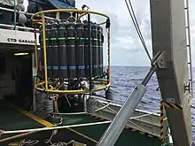 The Bermuda Atlantic Time-series Study (BATS) is a long-term oceanographic study by the Bermuda Institute of Ocean Sciences (BIOS). Based on regular (monthly or better) research cruises, it samples an area of the western Atlantic Ocean nominally at the coordinates 31°40′N 64°10′W / 31.667°N 64.167°W / 31.667; -64.167. The cruise programme routinely samples physical[1] properties such as ocean temperature and salinity, but focuses on variables of biological or biogeochemical[2] interest including: nutrients (nitrate, nitrite, phosphate and silicic acid), dissolved inorganic carbon, oxygen, HPLC of pigments, primary production and sediment trap flux. The BATS cruises began in 1988 but are supplemented by biweekly Hydrostation "S" cruises to a neighbouring location (32°10′N 64°30′W / 32.167°N 64.500°W / 32.167; -64.500) that began in 1954.[3] The data collected by these cruises are available online.