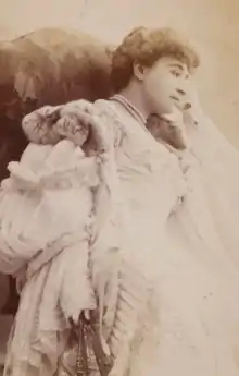 Les Annales du Théâtre et de la Musique for 1893 reported three plays that featured Berthe Cerny. In January she appeared at the Théâtre du Gymnase Marie Bell in Je dîne chez ma mère by Adrien Decourcelle. The critic wrote, "Mlle. Berthe Cerny, who had just had a great success in Brussels, had taken over Sophie Arnould's role with infinite charm and grace."[4] In April she appeared again at the Théâtre du Gymnase Marie Bell as Maman Clémentine in the Homme à l'oreille cassée by Pierre Decourcelle and Antony Mars, after the novel by Edmond About.[5] She appeared at the Théâtre du Palais-Royal in November as Etiennette in the romantic comedy Leurs Gigolettes by Henri Meilhac and Albert de Saint-Albin.[6] The critic said, "Berthe Cerny is fine and perverse; she shows us, moreover, with laudable disinterest, two exquisitely molded legs in pretty stockings of black silk."[7]