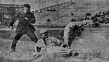 ![]() Leard slides into third. | |