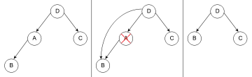 Deletion is the process whereby a node is removed from the tree. Only certain nodes in a binary tree can be removed unambiguously.[32]