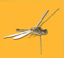 Morpho butterfly wings are structurally coloured to produce a vibrant blue that does not vary with angle.[109] This effect can be mimicked by a variety of technologies.[110] Lotus Cars claim to have developed a paint that mimics the Morpho butterfly's structural blue colour.[111] In 2007, Qualcomm commercialised an interferometric modulator display technology, "Mirasol", using Morpho-like optical interference.[112] In 2010, the dressmaker Donna Sgro made a dress from Teijin Fibers' Morphotex, an undyed fabric woven from structurally coloured fibres, mimicking the microstructure of Morpho butterfly wing scales.[113][114][115][116][117]
