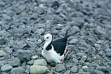 Although black stilts currently breed only in braided river systems in the South Island, subfossil bones show that prior to human arrival they were found in habitats as diverse as narrow bush streams in Hawkes Bay, and a wetland lake surrounded by forest in North Canterbury.[4] In the nineteenth century they bred on riverbeds and in wetlands of the central and eastern North Island and most of the South Island except Fiordland. As late as the 1940s they were still common in South Canterbury and Central Otago,[3] and nesting occurred in Central Otago as late as 1964.[2] Throughout their range they have been almost entirely replaced by pied stilts, which colonised New Zealand after human settlement and now number approximately 30,000.[4]