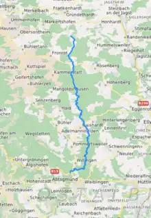 | Kotenbach | 1.2 | right | 367 | northeast of Abtsgmünd-Schäufele | from southeast Wilflingen |