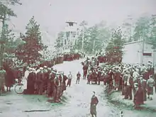 The first prisoners at the Botn camp were 472 Yugoslavs[10]: 87 [13] who arrived by ship on July 25, 1942. They had been brought by ship from Szczecin to Bergen on June 2. Twenty-eight of the prisoners were already shot upon arrival in Bergen. From Bergen, they were sent by ship to Botn, and 400 prisoners were sent further on to Karasjok. The Furumo farm was located about 150 meters (490 ft) from the camp, and those that lived there said that the prisoners were marched from the sea up to the camp in smaller groups, while the guards shouted at and struck them, causing many to fall over.[11]: 39
