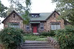 The Bloom House is a historic house at North Maple and Academy Streets in Searcy, Arkansas. It is a 1+12-story fieldstone structure, with a hip roof and two forward-facing projecting gable sections flanking its entrance. Its roof is finished in green tile, and a single brick chimney rises at the rear of the house. Built about 1930, it is a fine local example of the third stage of Craftsman styling executed in stone in the area.[2]