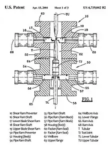 - ↑ US 2609836, Knox, Granville S., "Control head and blow-out preventer", published 1952-09-09, assigned to Hydril Corp.