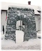 The Boyd Arch was transferred stone by stone to its new location in front of the Boyd Museum