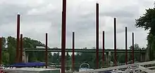 In 1953, Oregon began construction of a highway bridge just east of the ferry landings to carry what became Interstate 5.[4] The four-lane, north-south aligned bridge was finished in 1954 and opened to traffic in July, with the ferry ending service at that time.[3] The state named the bridge Boone Bridge in honor of the Boone family.[5] At the time there was a bronze marker in one of the bridge's piers to commemorate the name, but it was removed when the bridge was later widened.[6]