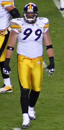 Brett Keisel (born September 19, 1978) is an American former professional football player who was a defensive end for 13 seasons with the Pittsburgh Steelers of the National Football League (NFL). He played college football for the BYU Cougars. He was selected by the Steelers in the seventh round of the 2002 NFL Draft.