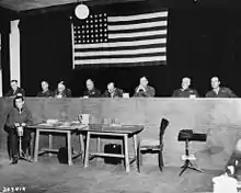 The Buchenwald trial or United States of America vs. Josias Prince of Waldeck et al. (also referred as Case 000-50-9) was a war crime trial conducted by the United States Army as a court-martial in Dachau, then part of the American occupation zone. It took place from April 11 to August 14, 1947 in the internment camp of Dachau, where the former Dachau concentration camp had been located until late April 1945. In this trial, 31 people were indicted for war crimes related to the Buchenwald concentration camp and its satellite camps, all of whom were convicted. The Buchenwald trial was part of the Dachau trials, which were held between 1945 and 1948.[1]