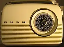 Bush became part of the Rank empire in 1945 and a brand new factory was opened at Ernesettle, Plymouth in 1949.[5] In 1946 the DAC90,[6] designed by Frank Middleditch,[7] featured in the V&A exhibition Britain Can Make It.[8] The original model in black became very popular and was succeeded by the DAC90A