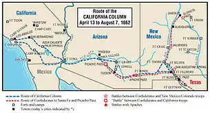 The California Column was a force of Union volunteers sent to Arizona and New Mexico during the American Civil War. The command marched over 900 miles (1,400 km) from California through Arizona and New Mexico Territory to the Rio Grande and as far east as El Paso, Texas, between April and August 1862.