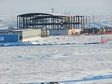 Cambridge Bay was chosen after a feasibility study that also included Pond Inlet and Resolute as potential locations.[56] Prime Minister Harper announced that, starting in 2012, the Government of Canada would spend $142.4 million over a six-year period to build, equip and provision the station. Additionally, again starting in 2012 and spread over six years, the government would provide $46.2 million for the CHARS Science and Technology Program.[57] The prime minister stated that to provide for the continuing research and operations $26.5 million per year, beginning in 2018–19, would be made available.[58] It is expected that the station will provide 35 to 50 jobs. These jobs, which will be full-time, part-time and seasonal, will start in 2017 and run the Science and Technology Program as well as provide the day-to-day operations of the station. In addition it is expected that 150 jobs will be created during construction for local and other people throughout the north. However, some of these jobs will require the hiring of specialised people from southern locales.[59] Construction began in August 2014.[60]