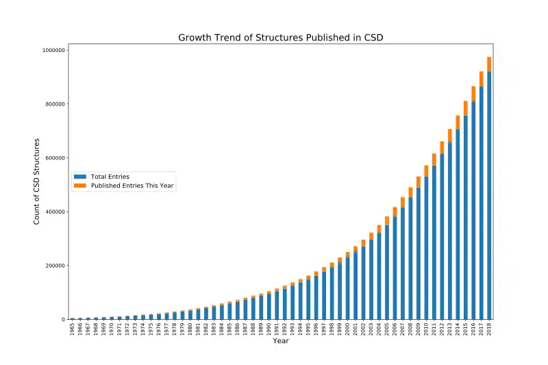 - ↑ "Growth of the Cambridge Structural Database (CSD) since 1970". CCDC. Retrieved 2014-09-16.