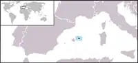 Location of the island of Menorca, in the western part of the Mediterranean Sea