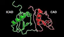 Caspase-activated DNase (CAD) or DNA fragmentation factor subunit beta is a protein that in humans is encoded by the DFFB gene.[5][6][7] It breaks up the DNA during apoptosis and promotes cell differentiation. It is usually an inactive monomer inhibited by ICAD. This is cleaved before dimerization.